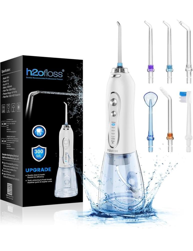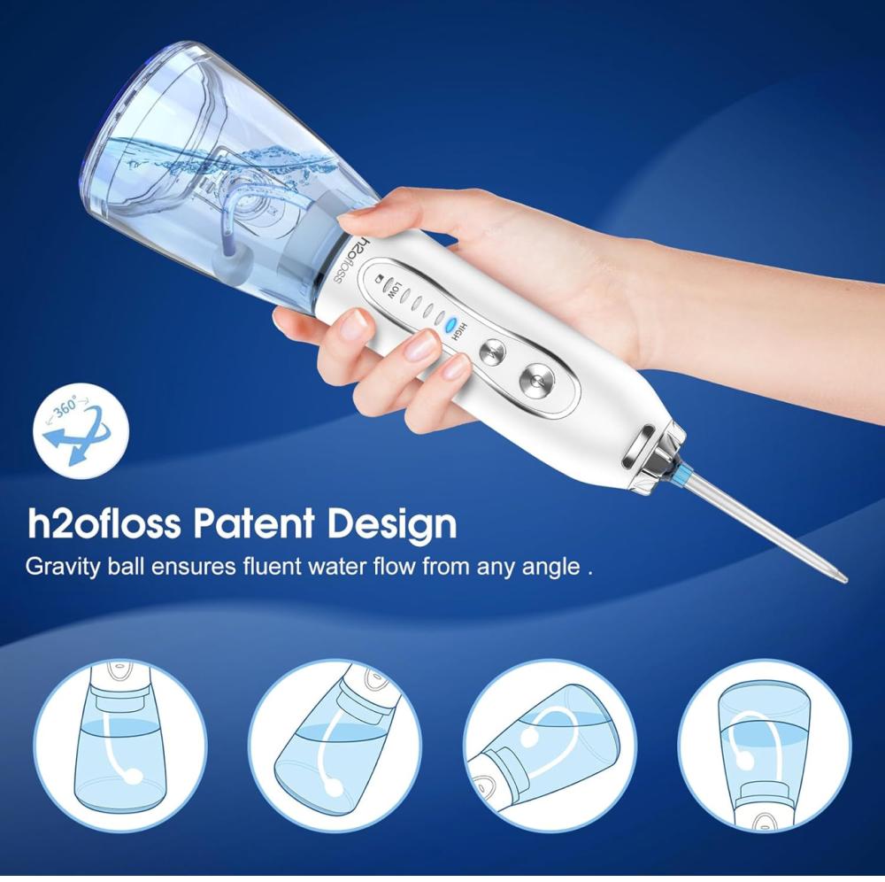 خيط الأسنان المائي، جهاز تنظيف الأسنان المائي، تنظيف الأسنان بالسفر، جهاز تنظيف اللثة، H2Ofloss HF-6، خيط الأسنان المحمول، فلوسر مائي مقاوم للماء.